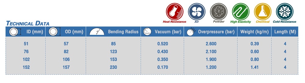 - ทนความร้อนได้สูง ดูด/เป่า ลมร้อน/เย็น ในอุณหภูมิระหว่าง -70 C ถึง +260 C approx.