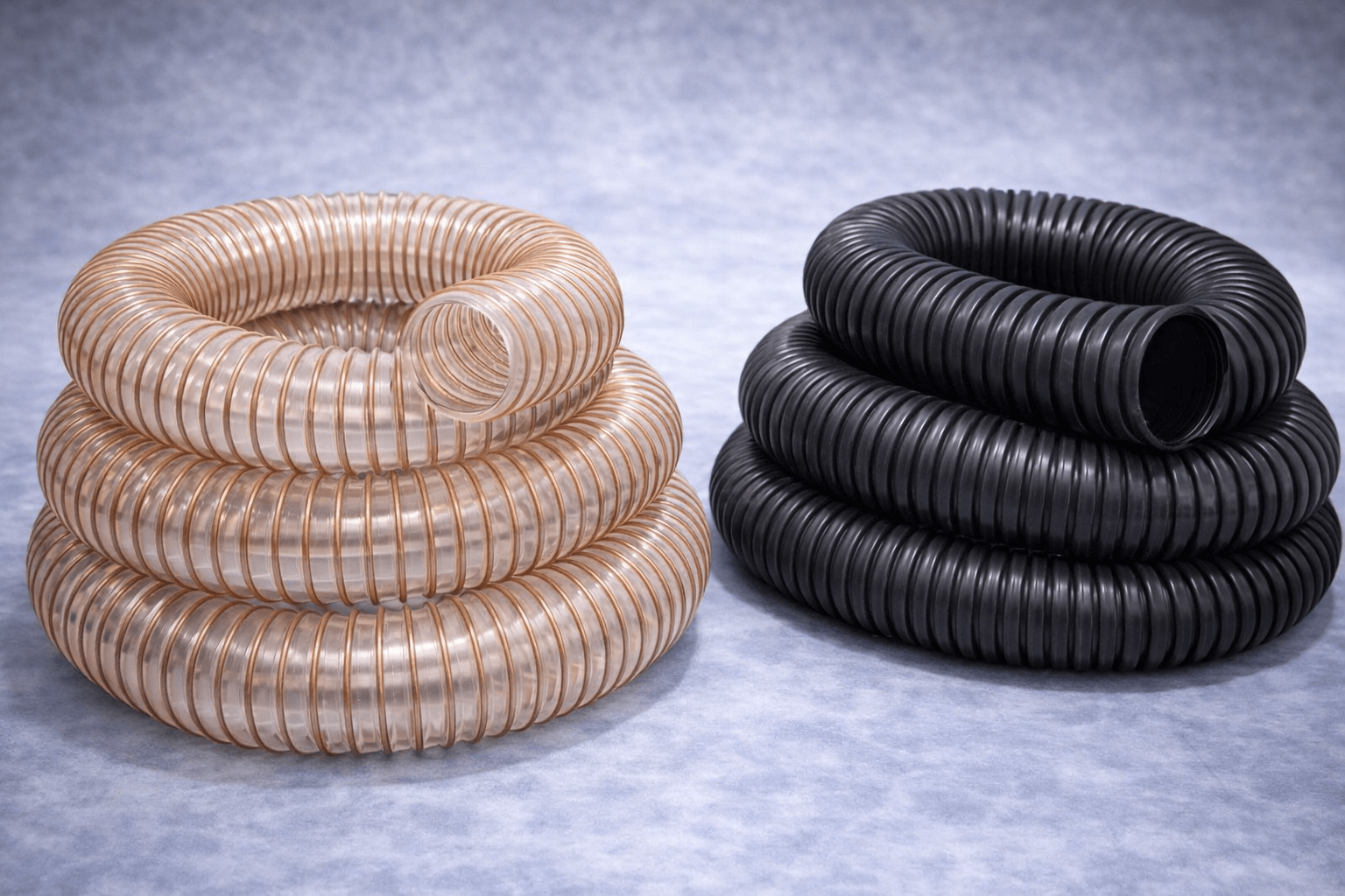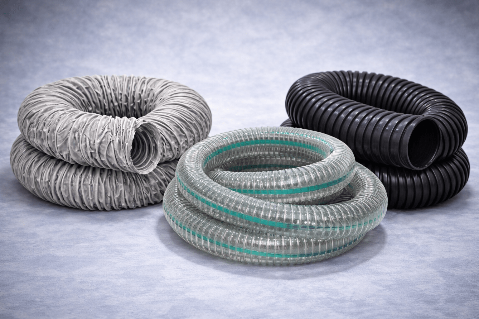 เลือกสินค้าตามประเภทวัสดุท่อไฟเบอร์ เคลือบซิลิโคนSilicone Hoseท่อผ้าใบเคลือบซิลิโคนทนความร้อนสูงพิเศษ โครงสร้างยืดหยุ่นสูงแต่แข็งแรงด้วยลวดสปริงสแตนเลส เหมาะสำหรับงานระบายความร้อนในระบบปิด งานอบแห้งเมล็ดพลาสติก และอุตสาหกรรมที่ต้องการการทนความร้อนระดับสูงLearn Moreท่อไฟเบอร์ เคลือบนีโอพรีนNeoprene Hoseท่อผ้าใบ 2 ชั้น เคลือบยางนีโอพรีนเกรดพรีเมียม เสริมโครงลวดสปริง ทนอุณหภูมิได้สูง และทนต่อแรงเสียดทานได้ดีเยี่ยม เหมาะสำหรับงานดูด-ส่งลมร้อน ควัน หรือฝุ่นผงในเครื่องจักรที่ทำงานต่อเนื่องLearn Moreท่อโพลียูรีเทน โครงลวดสปริง PU Hoseท่อใสไส้ลวดสปริง ผลิตจากโพลียูรีเทน (PU) เกรดพรีเมียม มีความหนาหลายระดับ ทนต่อการฉีกขาดและมีความยืดหยุ่นดีกว่าท่อ PVC เหมาะกับงานดูดเม็ดพลาสติก เศษไม้ หรือเศษวัสดุต่างๆLearn Moreท่อพีวีซีอเนกประสงค์PVC Hoseท่อพีวีซีอเนกประสงค์ มีทั้งแบบโครงแกนพีวีซี, ท่อผ้าใบเคลือบพีวีซี และท่อพีวีซีไส้ลวดสปริง น้ำหนักเบา ราคาประหยัด เหมาะสำหรับงานดูดระบายน้ำ ลม ควัน หรือเศษวัสดุทั่วไปที่ไม่มีความคมLearn Moreท่อดัดโค้งอยู่ตัวPP Hoseท่อดูดอากาศผลิตจากวัสดุโพลีโพรพิลีน (Polypropylene) คุณภาพสูง มีจุดเด่นที่ สามารถดัดโค้งและคงรูปได้ทันทีโดยไม่ต้องใช้ตัวยึด มีความทนทานดีเยี่ยม เหมาะสำหรับงานระบายควันเชื่อม งานดูดไอระเหยจากห้องแล็บ หรือระบบระบายอากาศที่ต้องการความคล่องตัวสูงLearn Moreท่ออลูมิเนียมAluminium Hoseท่ออลูมิเนียมฟอยล์ชนิดยืดหยุ่นสูงน้ำหนักเบา ติดตั้งง่าย ทนต่ออุณหภูมิได้กว้างตั้งแต่อากาศเย็นจนถึงความร้อนปานกลาง เหมาะสำหรับงานระบบปรับอากาศ งานระบายความร้อนเครื่องจักรเบา และท่อระบายควันภายในครัวเรือนหรืออาคารสำนักงานLearn Moreท่อเทอร์โมพลาสติกThemoplastic Hoseนวัตกรรมท่อผสมผสานระหว่างยางและพลาสติก ให้ความยืดหยุ่นสูงและทนทานต่อสภาพอากาศ (UV/Ozone) ได้ดีกว่ายางทั่วไป รองรับช่วงอุณหภูมิการใช้งานได้กว้าง และทนต่อสารเคมีเจือจางได้ดี เหมาะสำหรับงานดูด-ส่งลมในอุตสาหกรรมรถยนต์ และงานวิศวกรรมที่ต้องการวัสดุที่มีอายุการใช้งานยาวนานอุปกรณ์สำหรับงานท่อAccessoriesอุปกรณ์เสริมคุณภาพสูงเพื่อประสิทธิภาพสูงสุดในการติดตั้ง ออกแบบมาให้เข้ากับท่ออุตสาหกรรมทุกประเภท ช่วยป้องกันการรั่วไหล เพิ่มความแข็งแรงในจุดเชื่อมต่อ และยืดอายุการใช้งานให้กับระบบท่อในโรงงาน